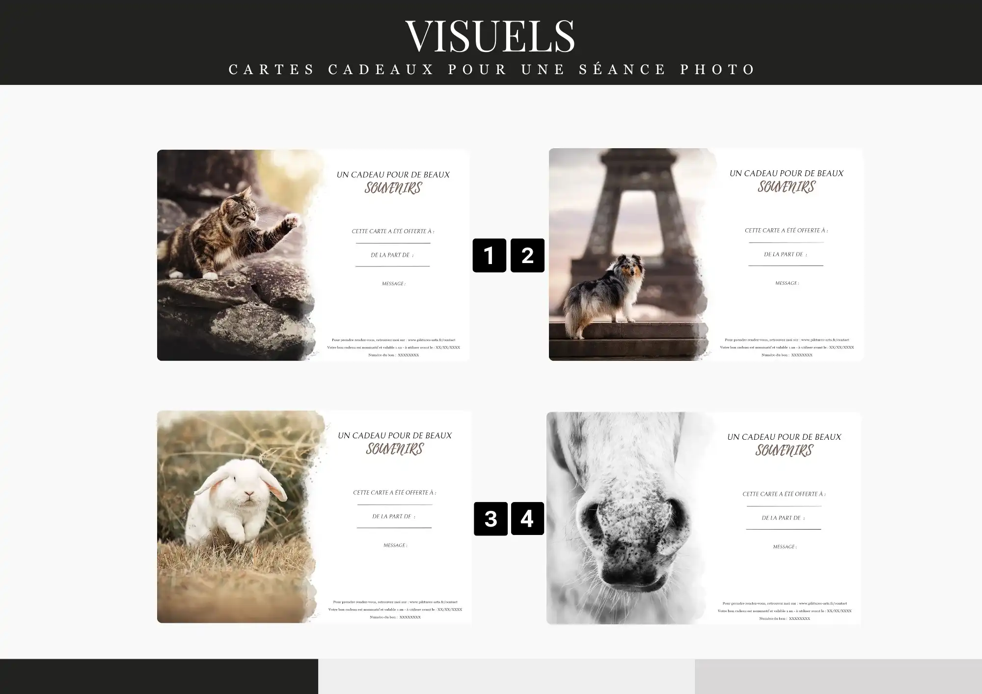 Chaque instant est capturé avec soin et transformé en images authentiques et artistiques, qui reflètent la relation unique entre l’humain et son compagnon. Offrir cette carte, c’est offrir un souvenir durable et précieux, chargé d’émotions et de bonheur, que l’on pourra regarder et chérir pendant de nombreuses années.